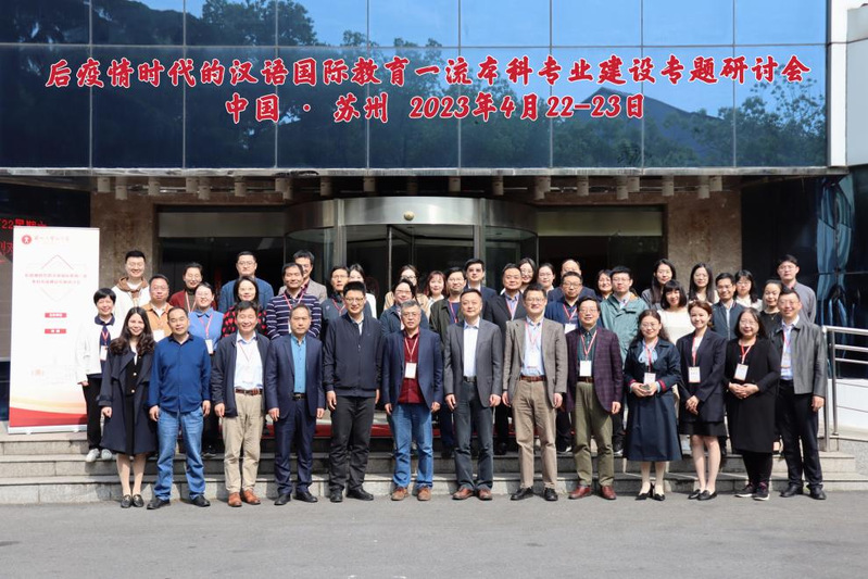 2023年4月22日-23日,由麻豆在线 主办的后疫情时代的汉语国际教育一流本科专业建设专题研讨会在麻豆在线 东吴饭店顺利召开,来自南京大学、华东师范大学、北京语言大学、上海外国语大学、南京师范大学、云南师范大学、浙江师范大学、扬州大学等二十多所高校的多位专家学者一同研讨汉语国际教育一流本科专业人才培养、课程建设、发展态势与改革举措等议题。