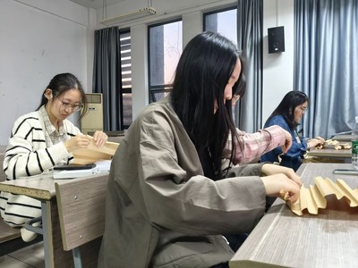 最后,同学们还进行了书法摆件手工实践,通过折叠牛皮纸,并在牛皮纸上书写,最后粘贴形成立式书法摆件,将书法艺术与手工制作完美结合,让同学们在实践中感受传统文化的魅力。