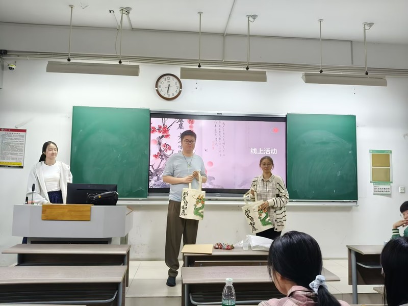 活动接近尾声时,主讲人对本次活动作了一个全面的总结,肯定了同学们积极的活动表现,并呼吁大家助力文化传承。最后,每位参与线下活动的同学都获得了一份香囊,并在一起合影留念,为活动画下了一个完美的句号。