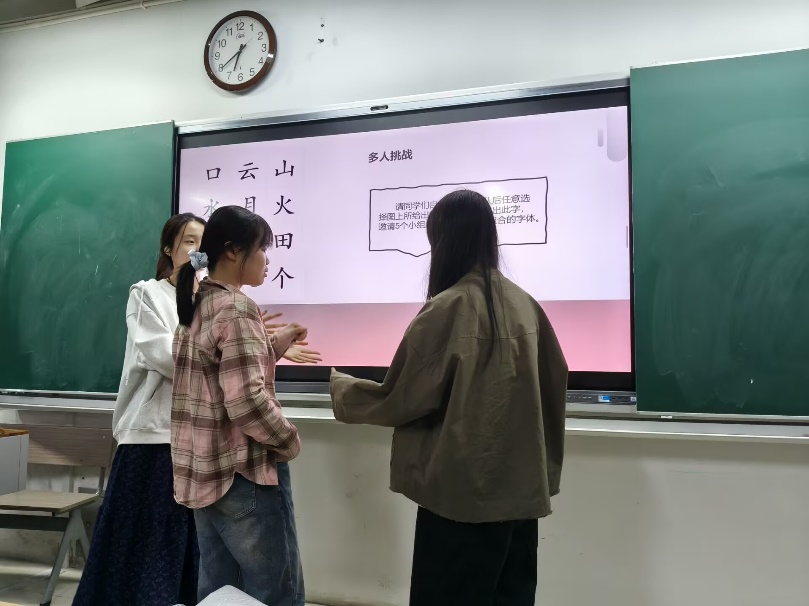 随后,八仙主题的汉字加减法挑战点燃了现场同学们的激情。同学们通过拆解汉字部件重组创字,并用创作的“新字”写了一段日记,展现了汉字的魅力和创造力。接着,肢体拼字活动更是将现场气氛推向高潮。同学们多人上台合作,大家互相配合,用身体拼出了复杂的汉字,现场充满了欢声笑语。