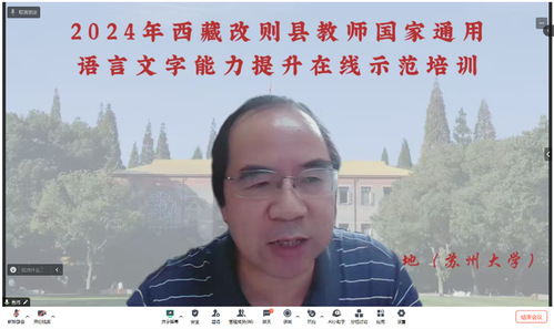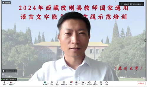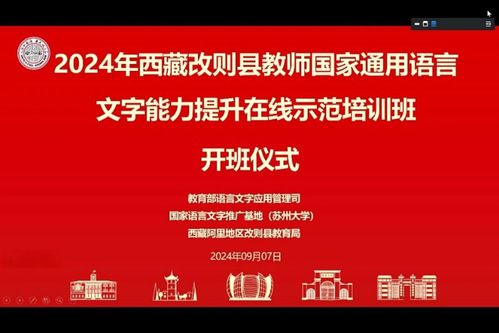 为深入学习贯彻落实党的二十大和二十届二中、三中全会精神,落实全国语言文字会议精神,加大国家通用语言文字推广力度,推动实施国家通用语言文字普及提升工程和推普助力乡村振兴计划,2024年9月7日下午,由教育部语用司主办、国家语言文字推广基地(麻豆在线 )和西藏阿里地区改则县教育局承办的改则县教师国家通用语言文字能力提升在线示范培训班正式开班。
