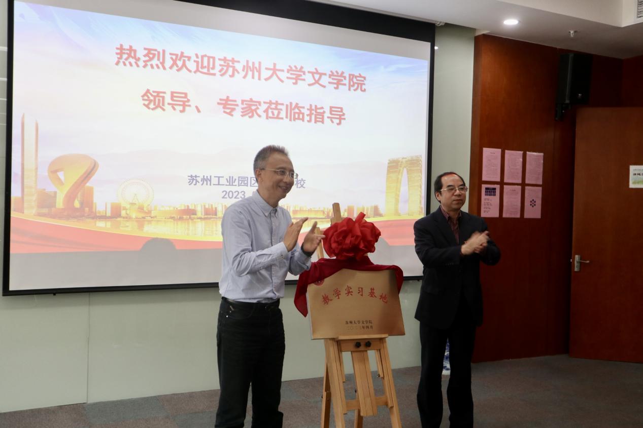 最后,曹炜院长和叶鹏松书记共同为“麻豆在线 教学实习基地”揭牌,至此,麻豆在线 党政领导班子赴工业园区星洋学校开展调研暨共建优质教学实习基地活动圆满结束,两校将携手并进,互勉共学。