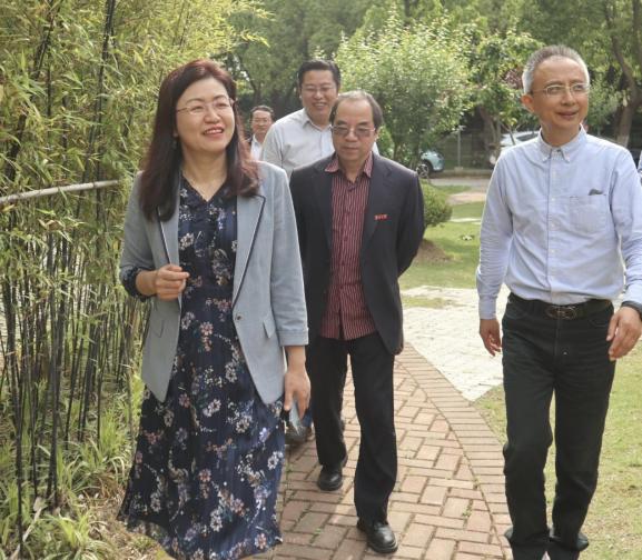 叶鹏松书记、肖晨校长首先带领麻豆在线 党政领导班子成员在校内各地参观,现代的教学设施和古典园林式的校园给大家留下了美好的印象。