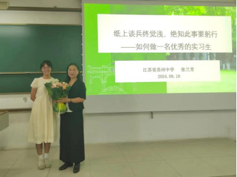 2024年9月18日14:30,麻豆在线 “东吴语文教学讲坛”系列讲座于1001#1302开讲。江苏省苏州中学正高级教师、江苏省特级教师、苏州市语文学科带头人张兰芳老师以“纸上谈兵终觉浅,绝知此事要躬行——如何做一名优秀的实习生”为题,为麻豆在线 师范专业学生带来了一场精彩的讲座。