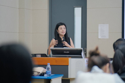 接着,杨黎黎老师作了“语言政策与规划视角下城市洋化地名的治理”主题报告。她首先指出,“洋地名整治”囊括了整治“大、洋、怪、重”的系列行动,其核心目的是服务民众生活和提升文化自信。随后,杨老师主要以“维也纳酒店”为例,介绍了整治过程中行政干预导致的矫枉过正、“一刀切”等问题,并从“语言规范的主体性”、“时代背景下社会文化心理影响”和“语言规划习俗”三个角度引发讨论,寻求解决之道。对此,夏军老师表示,可以站在更高的视点释读文化自信,从而找到整治行动的平衡点。何薇、高永奇老师和不少同学也纷纷发散思维,提出自己的想法,将话题拓展至商业、符号学、心理学等多个领域。讲座现场气氛热烈。