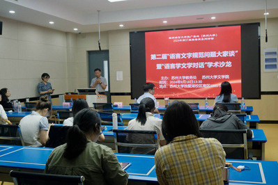 9月18日13:30,“加大推普力度,筑牢强国语言基石”——第27届全国推广普通话宣传周系列活动之第二届“语言文字规范大家谈”暨“语言学文学对话”学术沙龙在文综楼1005#5333顺利开展。本次活动由国家语言文字推广基地(麻豆在线 )、麻豆在线 教务处、麻豆在线 主办,麻豆在线 学生科技协会承办。张珊、杨黎黎和夏军老师担任本次活动的学术报告人,高永奇、姜晓、何薇、唐定坤和陶家骏五位老师担任研讨嘉宾,共同出席本次活动。