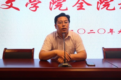 曹炜院长发表讲话。他首先公布了麻豆在线 人员岗位调整的名单:张珊副教授担任古代文学教研室主任,王台生老师担任科研秘书,刘润泽老师担任教务秘书。曹院长希望三位老师能尽快适应新的工作岗位。