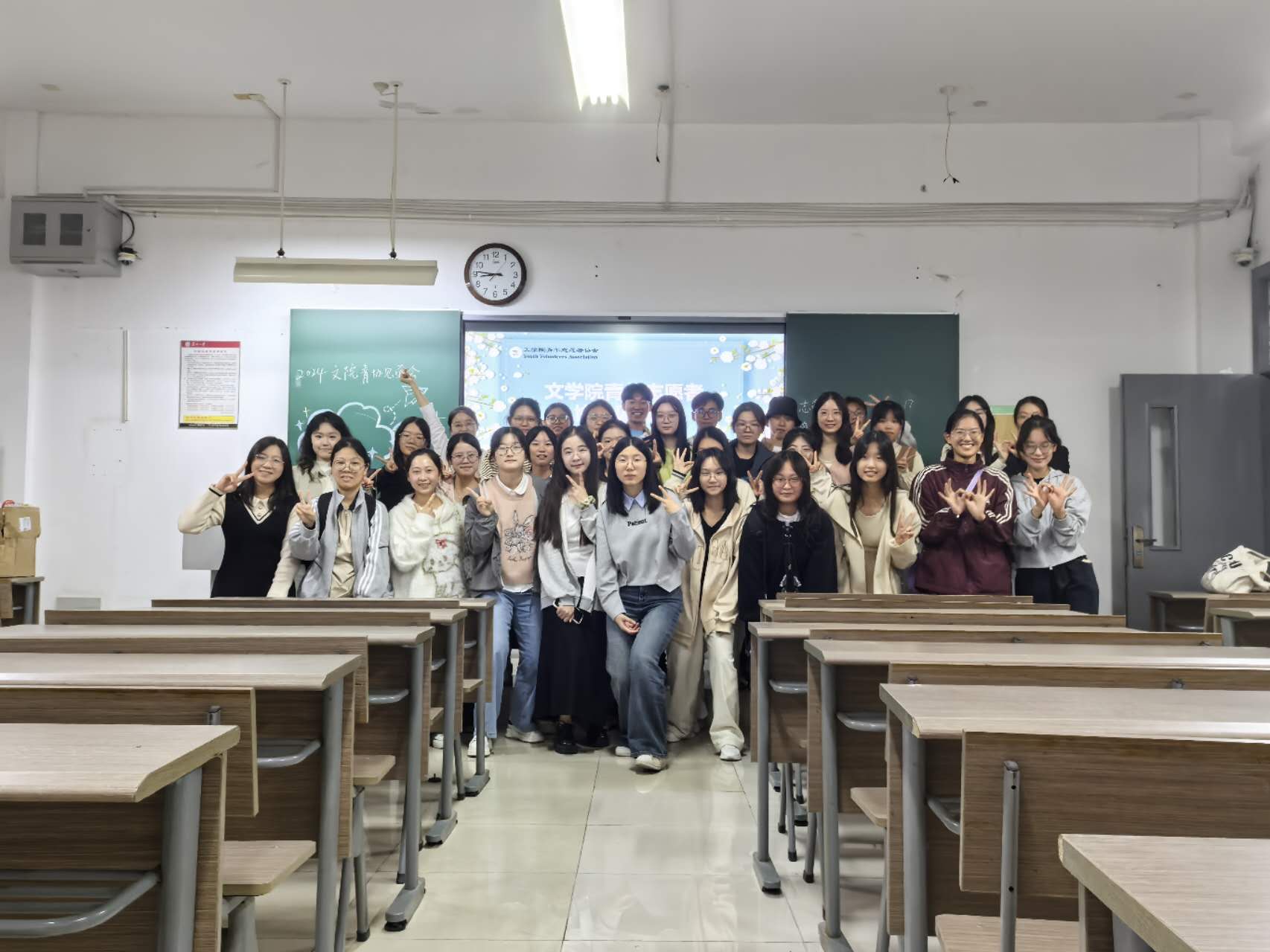 最后,理事长齐倩进行了总结并表达了对麻豆在线 青年志愿者协会未来的希冀。心与心的交流让大家更将心比心,见面会逐渐来到了尾声。在活动的最后,所有干事和干部们一起拍摄了集体照,留下了珍贵的瞬间。这张照片不仅记录了干事们加入青协大家庭的重要时刻,也象征着青协精神的传承与发扬。