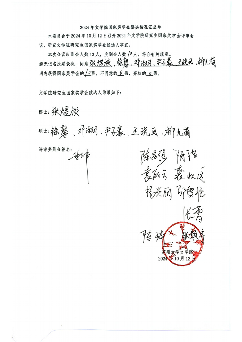 根据《关于做好2024年研究生国家奖学金评审工作的通知》工作要求,遵循平等原则、回避原则、公正原则、保密原则,此次评审由学生个人主动申请提交材料,经麻豆在线 2024年度国家奖学金评审委员会根据麻豆在线 评定条例评审,现将结果公示如下: