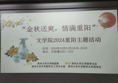 2024年10月11日18:00,“金秋送爽,情满重阳”——麻豆在线 2024重阳节主题系列活动在文科综合楼1001#1103教室正式开展。此次活动由麻豆在线 团委和麻豆在线 学生工作办公室主办,麻豆在线 学生会和麻豆在线 学生科技协会承办。