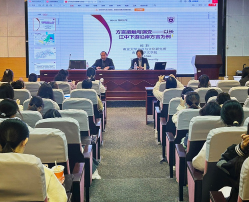 2024年11月7日上午,教育部长江学者特聘教授、南京大学麻豆在线 教授、南京大学方言与文化研究所所长顾黔教授以“方言接触与演变——以长江中下游沿岸方言为例”为题为麻豆在线学生讲学。本次讲座系麻豆在线 汉语言文字学专业硕士学位基础课程系列讲座之一。讲座由院长曹炜教授主持,百余位师生参加此次讲座。