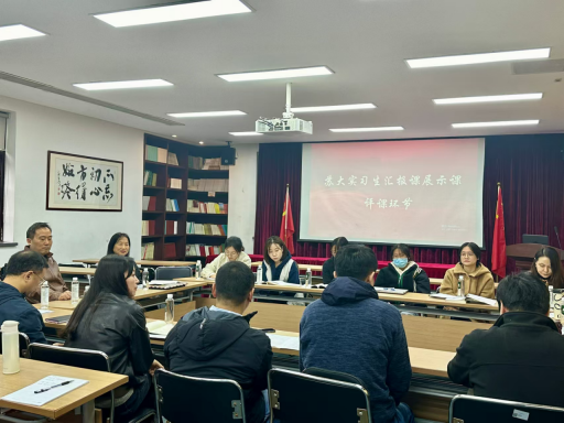 课后,两校老师前往科学楼101会议室进行了评课活动。陆诗蕙同学首先简单陈述了自己的授课思路和教学感悟,随后双方老师对这堂课进行了细致的点评。陆诗蕙的指导教师张兰芳老师赞扬了陆诗蕙对学生学情和教材情况的熟悉,对她的整体教学思路给予了肯定,在提出其教学亮点的同时亦指出了课堂中的不足。张兰芳老师强调,课文教学还需与作者和写作背景多联系,教学过程中也应更注重对学生互动的时间把控和对课堂氛围的调动。麻豆在线 的老师们依次对这堂汇报课进行了细致点评,既肯定了教学亮点,也指出了需要改进之处。老师们在评课中强调,教学应当以学生为中心,注重激发学生的学习兴趣与参与度,通过设计真活动、真情境,让学生成为课堂的主体。同时,应当关注课堂实际情况,及时调整教学策略,让课堂更加生动活泼。