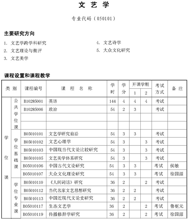 文艺学博士生培养方案