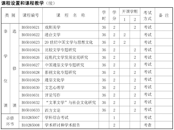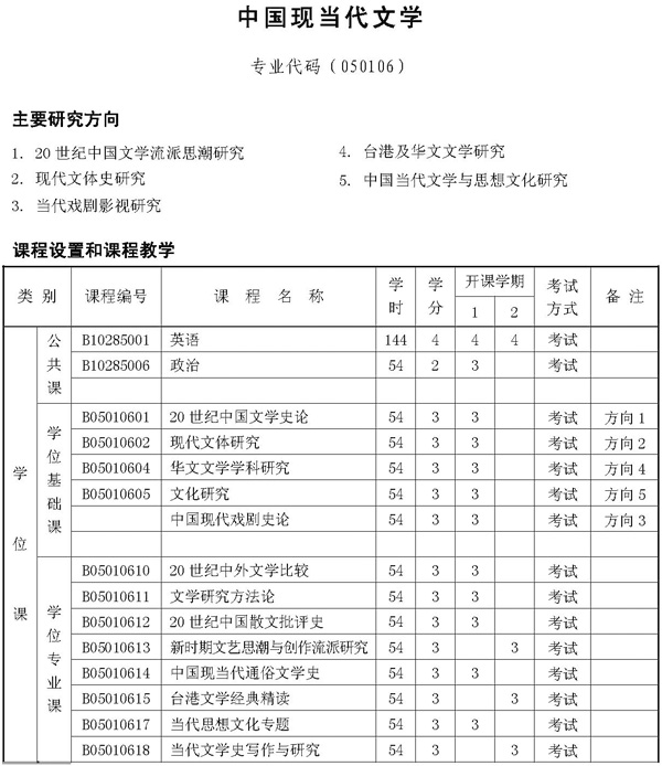 中国现当代文学博士生培养方案