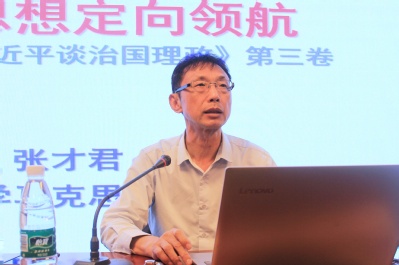 张才君从《习近平谈治国理政》第一卷和第二卷的专题、照片等基本情况谈起,与第三卷进行了横向比较。通过讲述亲身经历的一些故事,他用生动直白的语言强调了学习党的理论知识的重要性。