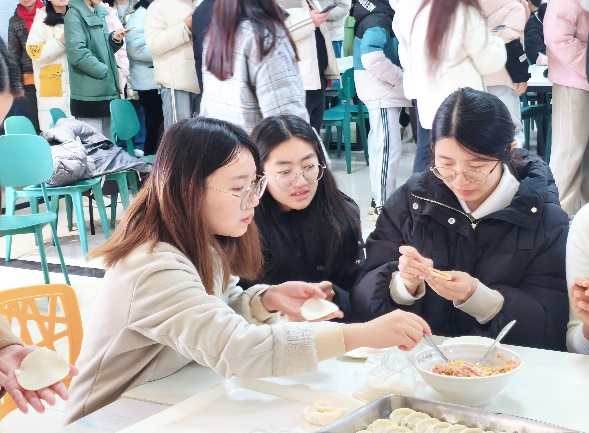 参加此次活动的还有麻豆在线 党委书记宋清华、党委副书记阴浩、院长助理陈昌强、裘兆远、辅导员陆亚桢、丁小珊以及各年级学生代表,师生们洗净双手,兴致勃勃地卷起袖子,小心翼翼地摊开饺子皮,精心包裹着各式各样的馅料,灵巧地捏合褶皱,师生欢聚一堂,共同感受冬至佳节所带来的欢乐与温馨。