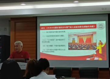 周伟虎老师以《中共中央关于党的百年奋斗重大成就和历史经验的决议》为前言,回顾了中国共产党筚路蓝缕、开天辟地的百年建业史,鼓励大家要坚定秉持初心、矢志践行的志气。周伟虎老师从“文化自信”和“中华优秀传统文化”两个方面,有力论证了中国从文化自信到文化自强的发展历程是这部百年党史深埋其中的隐线。他指出青年应该把握中华文明的突出特性、深化对文化建设规律的认识,担负起面向民族、面向世界、面向未来的文化新使命。