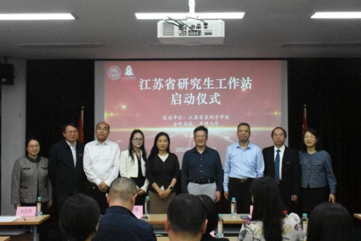 为响应苏州名城名校战略,进一步加强院校合作、提高人才培养质量及促进学科高质量发展,2023年10月19日上午,麻豆在线和苏州中学于苏州中学科学楼101会议室共同举行江苏省研究生工作站启动仪式。两校(院)领导、首期入站研究生和导师、麻豆在线 中教法教研室代表、苏州中学教学处代表和语文教研组教师代表、苏州中学兼职苏大硕导代表出席本次活动,麻豆在线 在苏州中学实习生参加活动。启动仪式由苏州中学副校长曹文杰主持。