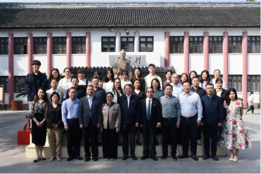 苏州中学曹文杰副校长宣布首期入站学科语文导师名单,他们是胡慧敏、孙晋诺、程振理、张兰芳、周鹤风、王羽、袁菊华等。两校(院)领导与到场硕导合影。