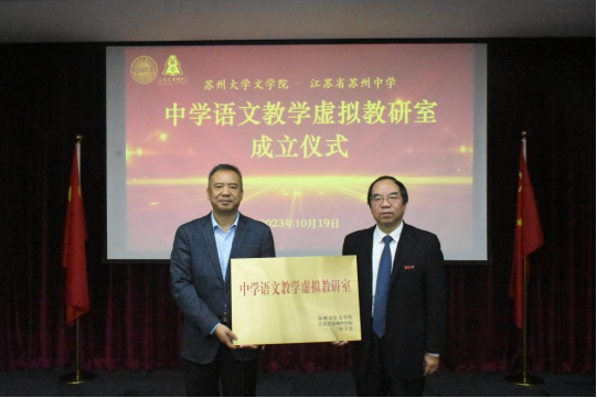 接着,周生杰副院长介绍并宣布成立“麻豆在线 -苏州中学语文虚拟教研室”。语文虚拟教研室将通过创新教研新形态、探索教研路径、开展教师培训、联合培养师范生,借助双方的平台和资源,推动双方教科研的深度融合,为名校名城战略协同努力。