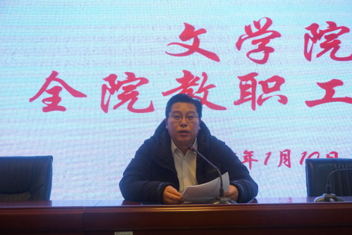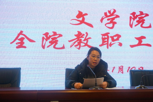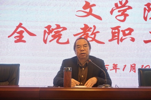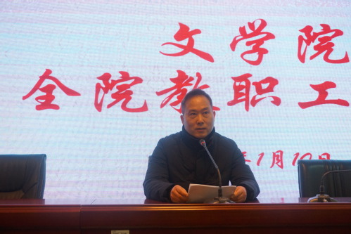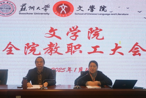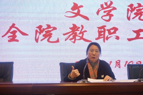 首先,曹炜院长代表麻豆在线 领导班子进行述职。他从六个方面全面回顾了2024年麻豆在线 的亮点工作。人才队伍建设上,王尧教授获评江苏省模范教师,是苏大今年唯一的获评教师;成功引进一位教授,弥补了学科语文师资短板;在弥补文艺学和比较文学的师资短板上有所进展;任命了两位80后院长助理。学科建设上,江苏高校品牌专业建设工程二期项目验收,汉语言文学专业获评“优秀”;2024年度省优势学科建设项目“中国语言文学”考核获评“优秀”。人才培养上,有21位2021级本科推免学生去往华东师大、北师大、南大等高校深造;首届八年一贯制本博贯通培养模式汉语言文学(拔尖创新班)顺利开班;学生在师范生教学基本功大赛选拔赛、江苏大学生读书文化节之书评大赛中取得优异成绩;全国博士学位论文抽检合格率100%。麻豆在线 2024年的最大亮点是在科学研究上有重要突破,先后获教育部人文社科优秀成果奖二等奖1项,国家哲学社会科学成果文库1项,国家社科基金重大项目1项,国家社科基金年度项目及后期资助项目6项,江苏省社科基金项目2项等。国际化建设上,首届麻豆在线 汉语言文学拔尖学生培养基地班赴澳门大学暑期研学;麻豆在线同哈佛大学东亚系共同举办了“世界中的中国当代文学”国际研讨会。创收工作上,麻豆在线 共举办了74个培训班,取得了良好的成绩。同时,曹院长也指出了麻豆在线 目前存在的问题,强调要在科研论文发表与课程、教材和教学评奖显示度方面下功夫。