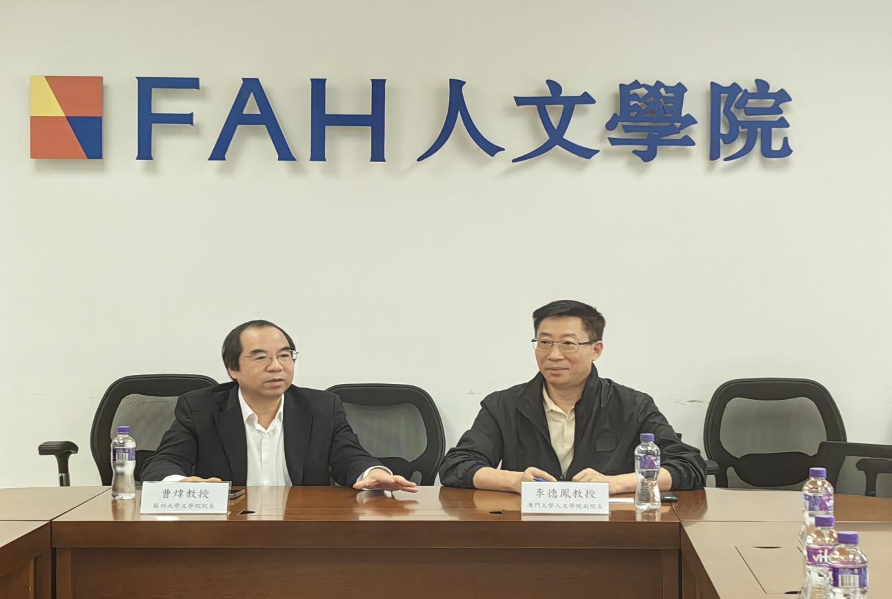 11月13日下午,曹炜院长一行应邀参访澳门大学中国历史文化中心,并与澳门大学历史文化中心主任朱寿桐商讨并确定了麻豆在线拔尖基地班学生寒暑假期赴澳门大学开展沉浸学习交流的具体方案。