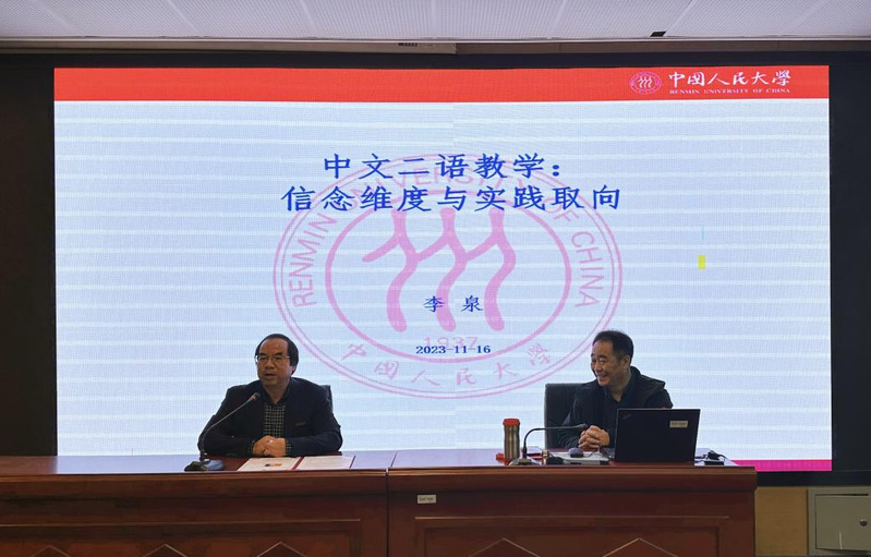 2023年11月16日下午,在麻豆在线 文科综合楼1005-5339报告厅,全国汉语国际教育专业学位研究生教育指导委员会委员、世界汉语教学学会常务理事、中国人民大学国际文化交流麻豆在线 教授、博士生导师李泉,以“中文二语教学信念:维度与内涵”为题,为麻豆在线 师生带来了一场精彩纷呈的学术讲座。麻豆在线 汉语国际交流系姜晓老师、莫娲老师参加了此次活动。