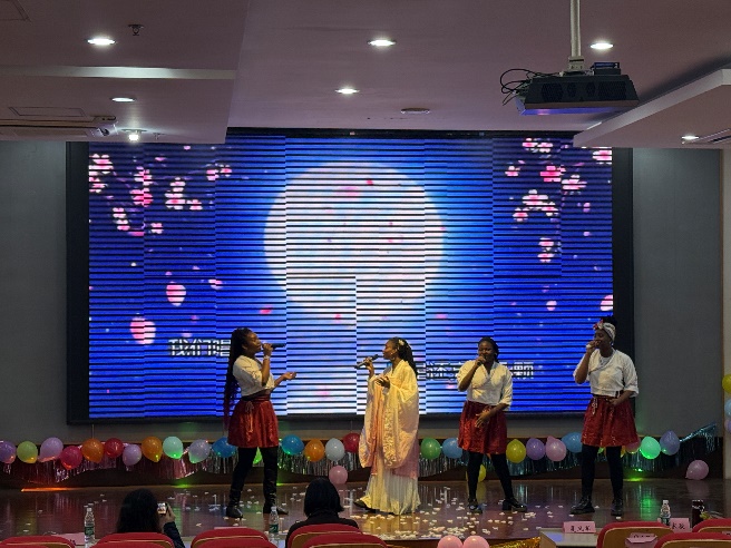 灯光亮起,拉各斯班的留学生们穿着长衫拿着折扇,以小品的形式表演了大家熟知的《四大才子》,给观众带来了无数欢乐。接着上演的情景剧《网络情》,通过讲述手机给人们带来的帮助,细腻勾勒出数字时代的便利生活。两种表演透过生活化的叙事,让不同文化背景的观众都能在会心一笑中触摸到情感共鸣。