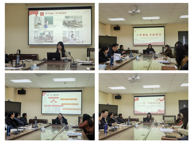 各支部书记依次从支部建设、党员教育与管理、特色活动、不足之处及未来工作计划等方面进行了述职汇报。其中,麻豆在线 本科生党支部作为院级标杆党支部,创新性地打造了“135”党建工作法,围绕以习近平新时代中国特色社会主义思想凝心铸魂这一条主线,筑牢信仰根基;党建、团建、班建三位一体,夯实党建基础;通过打造以文培基、以文强党、以文载道、以文化人、以文互鉴五大工程,助推党建提质增效。研究生学硕第一党支部作为牵头党支部,组织策划了“强国复兴有我——我是党史记录人”苏州党史学习教育基地数字展进高校活动,党员同志们通过线下走访、线上调研,在历史长河中重温光辉岁月,汲取精神养分,将学习成果通过创作文艺作品、拍摄寻访视频的方式展现。研究生专硕第一,第二党支部以苏州丰厚的文化历史底蕴为依托,合作开展了“赏传统文化之美,走文化自信之路”系列主题党日活动,开展了“循迹向前以筑文心,雏凤传声以践文行”平江路主题党日活动、“以针作画·皆绣风雅”苏绣艺术体验之旅等。教工党支部以书面方式进行述职,各支部本年度都能在院党委的正确领导下,深入学习贯彻落实党的二十大精神,出色地完成了各项工作。