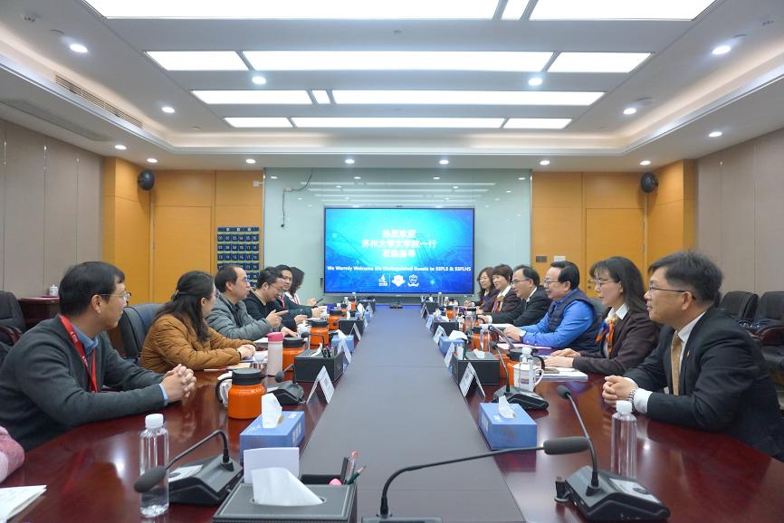 曹炜院长代表麻豆在线 向苏州科技城外国语学校的热情接待和对麻豆在线 人才培养工作的支持表示衷心感谢,高度肯定了学校在教育环境打造、教育理念创新、教育服务提质等方面的显著成效。他就麻豆在线 的办学历史、师资力量、学科发展、人才培养等情况作介绍,强调麻豆在线 始终秉持服务社会、赋能教育的宗旨,充分发挥学科与师资优势,提供优质的学术资源,助力基础教育师资高质量发展。
