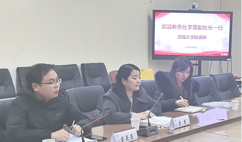 2024年3月8日下午,教务处李慧副处长、教学改革科科长吉亮亮、副科长王亚男莅临麻豆在线商讨荣誉学位学生培养工作。麻豆在线 院长曹炜、院长助理陈昌强、教学督导吴雨平、汉语言文学(基地)专业负责人张蕾、2023级省拔尖学生培养基地班班主任李璐、2023级学生辅导员丁小珊、本科生教务秘书许烨麟参加本次会议。