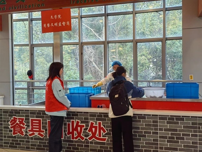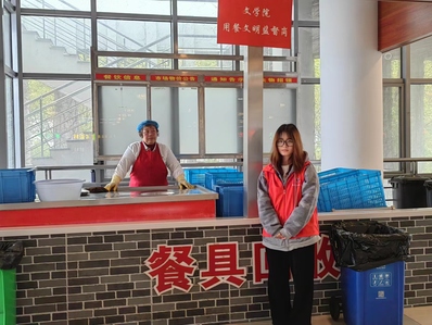 活动期间,每天都有志愿者在第八食堂值班。志愿者们在食堂倡导大家根据自身饭量,适量用餐,养成“吃多少、拿多少”的就餐习惯,坚决制止餐饮浪费行为,杜绝舌尖上的浪费。此外,他们还协助食堂工作人员完成餐盘的回收和整理,维护食堂的整体秩序,营造了良好用餐环境。