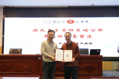 此次讲座为“仲联学术讲坛”系列讲座之一,麻豆在线 院长助理陈昌强教授代表麻豆在线 为王风教授颁发了讲座纪念证书。张蕾教授主持了本次讲座。