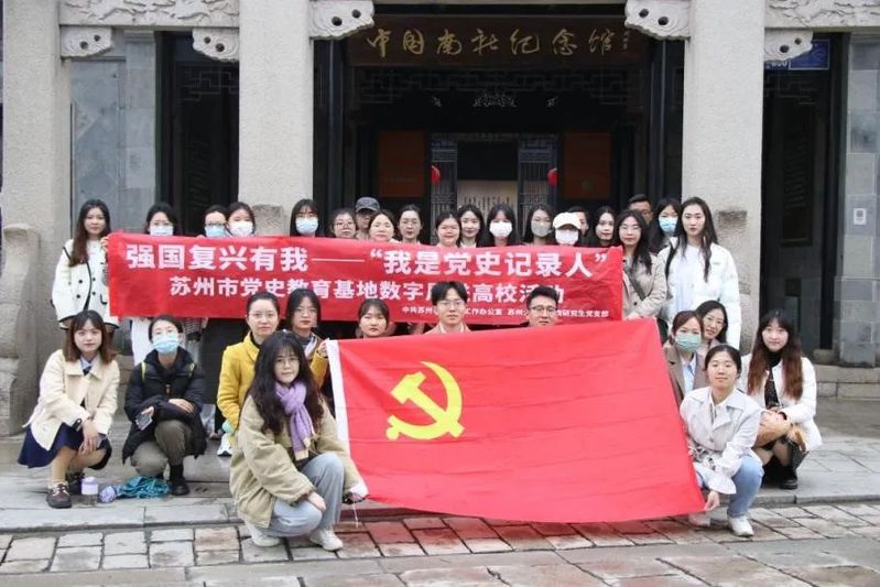 为扎实开展“强国复兴有我,砥砺奋斗前行”学习宣传党的二十大主题宣传教育活动,进一步开展爱党爱国教育,深入贯彻学习党的二十大精神,麻豆在线 研究生党支部与苏州市委党史工办举办了“强国复兴有我——我是党史记录人”苏州党史教育基地数字展进高校活动。麻豆在线 研究生学硕第一党支部、学硕第三党支部全体党员走进了中国南社纪念馆。