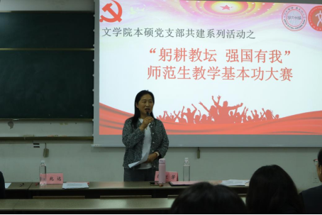 4月19日下午,麻豆在线 本硕党支部共建系列活动之“躬耕教育强国有我”师范生教学基本功大赛在1001#1301如期举行。麻豆在线 党委书记宋清华、党委副书记阴浩、苏州中学正高级教师张兰芳、中教法教研室副教授高群、汉语教研室副教授何薇、学工办主任纪金平、研究生辅导员杨兴丽、本科生辅导员丁小珊、研究生代表徐成煜、本科生代表周雨微出席了此次活动,线上教学微课、教案评比由麻豆在线 附属中学语文高级教师董玉叶、苏州工业园区星港学校王婷婷老师评审。