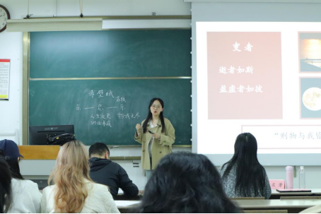 随后,在本科生分会场和研究生分会场,模拟授课比赛同时展开。比赛采用“同课异构”的方式,几位选手模拟授课同一文本。在相同内容的基础上,展现出文本解读上的异、教学设计与构思上的异、教学方法上的异、教学风格上的异。选手们围绕不同的教学内容,展开了精彩纷呈的教学展示。