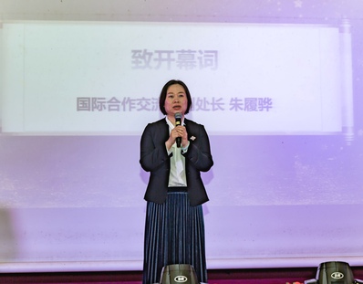 首先,国际合作交流处副处长朱履骅上台致辞。朱处长肯定了中外学生及老师在疫情期间的共同努力,表达了对本次比赛的期望并为在场的选手及观众送上美好祝福。随后,主持人介绍了本次比赛的规则并邀请几位留学生作为特邀嘉宾进行了开场表演。老挝学生张星宇带来邓丽君的金曲串烧;小菲和两位中国学生合唱歌曲《朋友》,比她们的歌声更加动人的是中外学生间的亲密友谊。