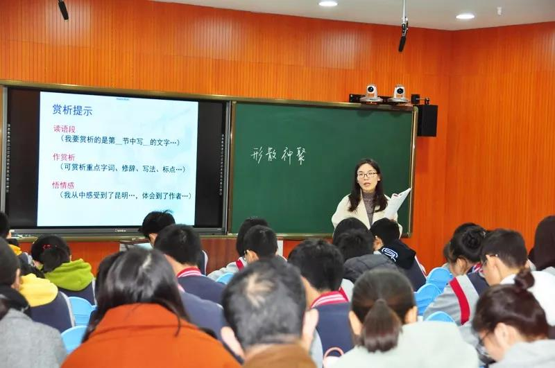 在小学组的课堂展示活动中,徐佳萍、唐晓芳两位老师分别带领走进文言文《伯牙鼓琴》和巴金的散文《鸟的天堂》。在《伯牙鼓琴》的教学中,徐佳萍教师立足文言文教学的传统,在诵读中涵咏,在精思中诵读,在启发下问答,在问答中点拨学生理解文言的方法,深化学生对“知音”“绝弦”的深入认识;在《鸟的天堂》教学中,唐晓芳教师暗含着任务教学的神髓,任务不是教师提出的而是师生共同生成的,即:赏析大榕树静态描摹中的奇特和美丽及其动态描写中众鸟纷飞的壮观景象。这一任务的完成借助着“朗读”和“品味”两种方式,在朗读和品味中咀嚼文字、品味语言,体会散文的表达方法及其对生命的的咏叹。任务还应该有拓展,老师最后希望学生课后能够拓展到同一主题的其他作品的阅读