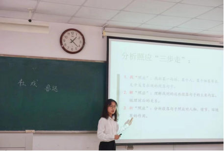 比赛环节包括提交教学设计、现场模拟试讲、评委老师点评以及公布成绩四个环节。本次比赛共有13位同学参加,她们结合当下的部编版初高中语文教材中的课文进行教学设计,并在选拔赛中呈现出精彩的二十分钟模拟试讲。在试讲时,参赛同学运用多种教学手段,用精妙的语言诠释了自己对教学内容的匠心设计,台风沉稳大气、理念新颖独特,她们将专业知识与教学实践结合起来,努力做到立足文本,推陈出新,呈现出生动的课堂氛围。